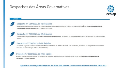 Despachos das Áreas Governativas Aguarda-se atualização dos Despachos das AG no XXIV Governo Constitucional, referentes ao triénio 2025-2027