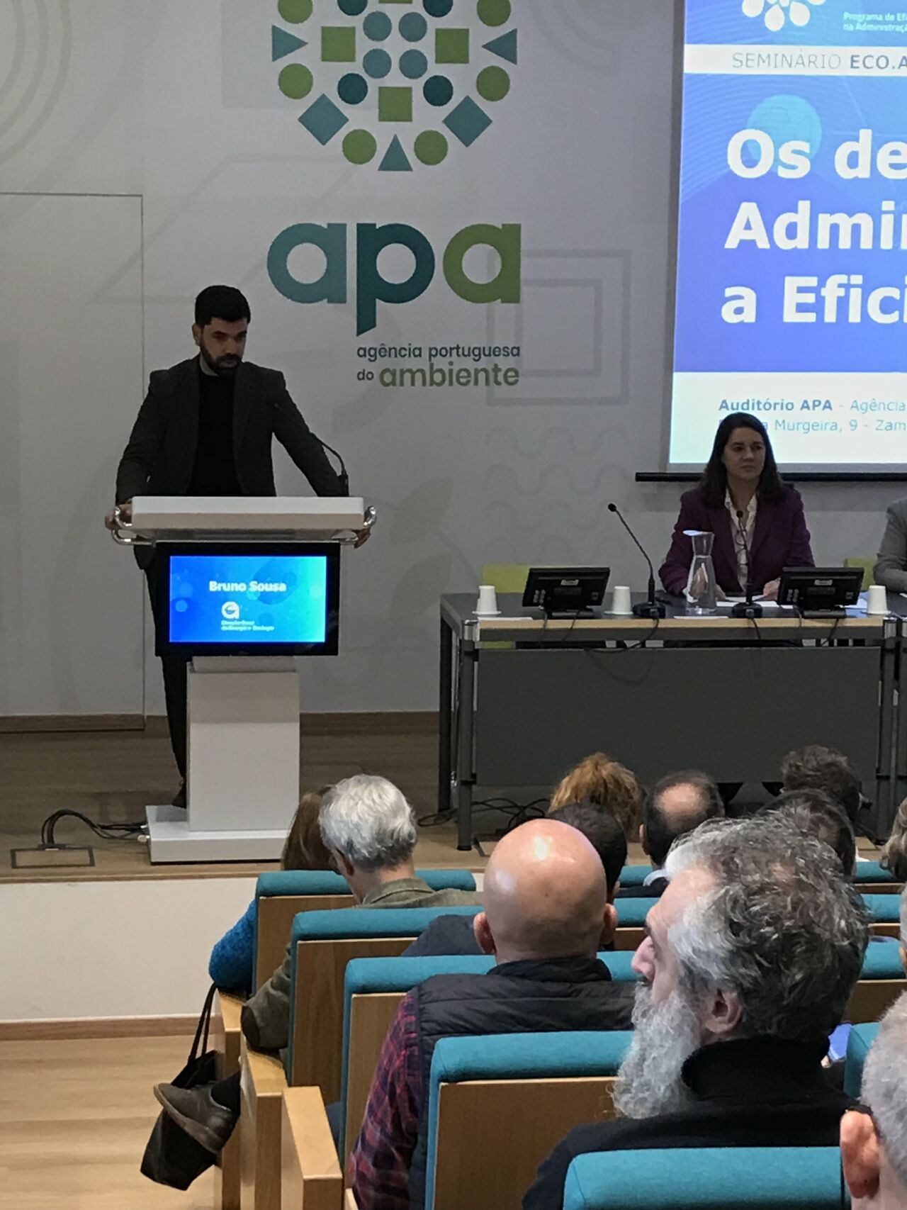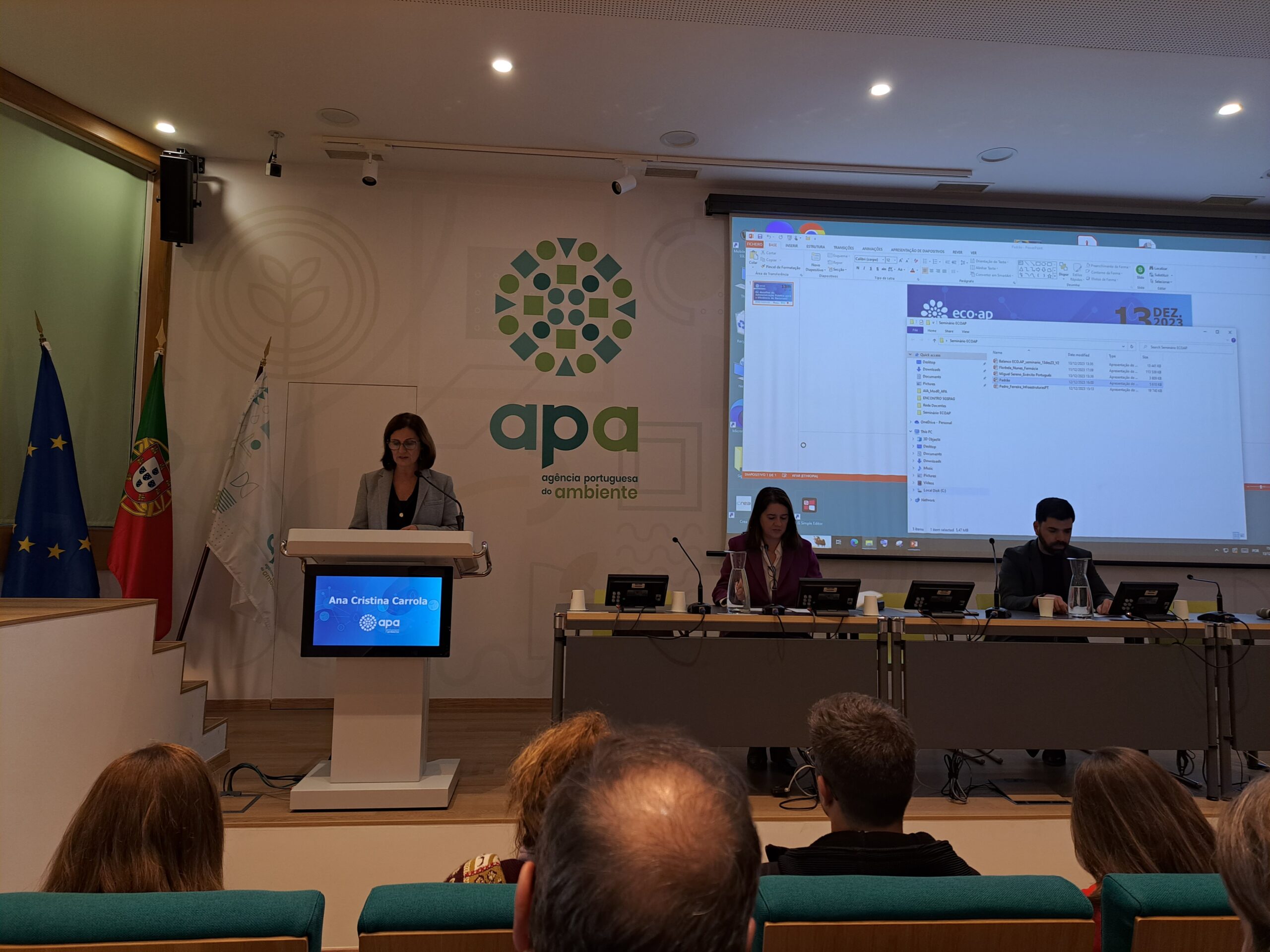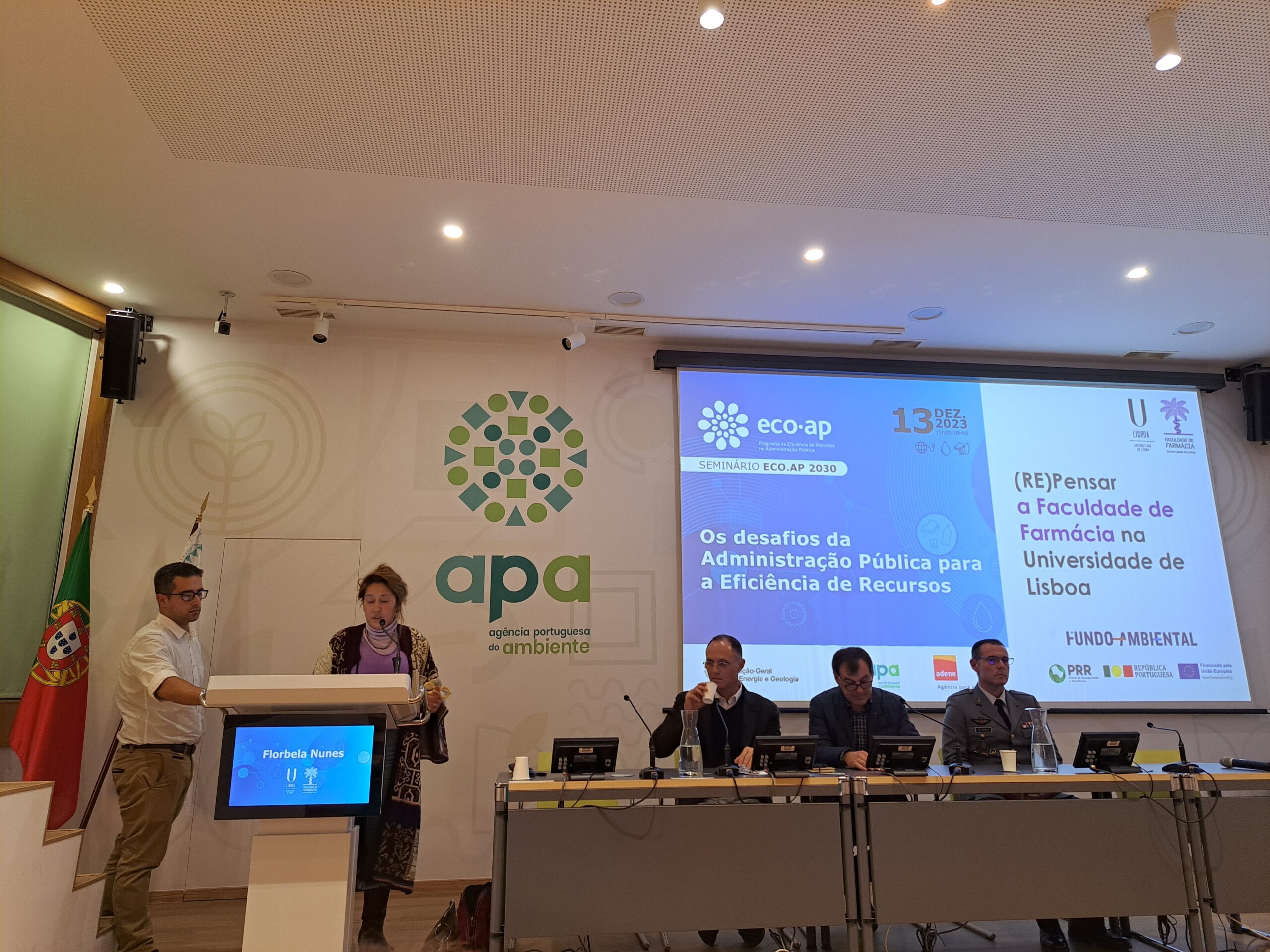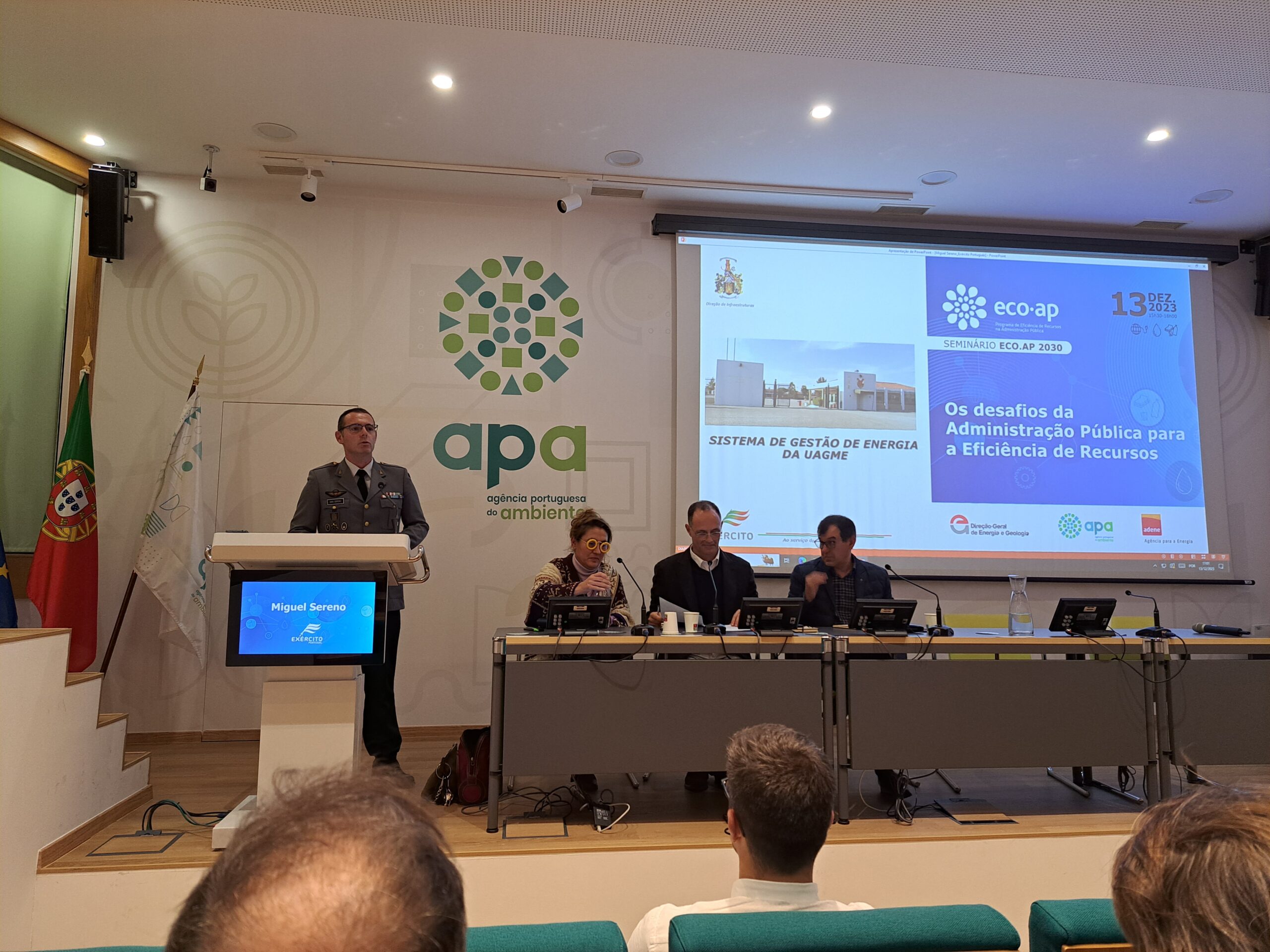 No dia 13 de dezembro de 2023, realizou-se o Seminário ECO.AP 2030: “Os desafios da Administração Pública para a Eficiência de Recursos”, que teve lugar no Auditório da Agência Portuguesa do Ambiente (APA), entre as 15h30 e as 18h30, e com transmissão online.